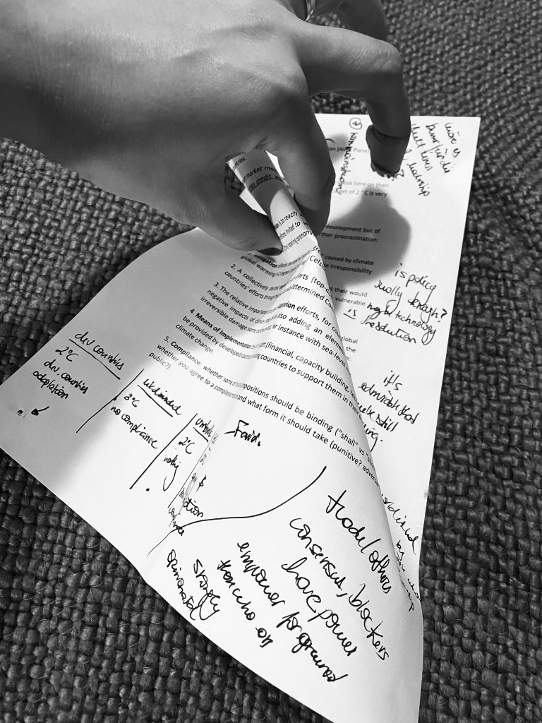 I started visualizing the text, printed in front of me, as a mathematical space, and the connections as folding its plane. Something like this: